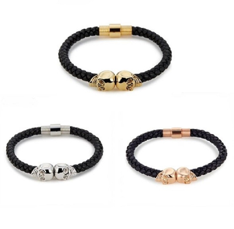 Pulseira de caveira trançada para senhora