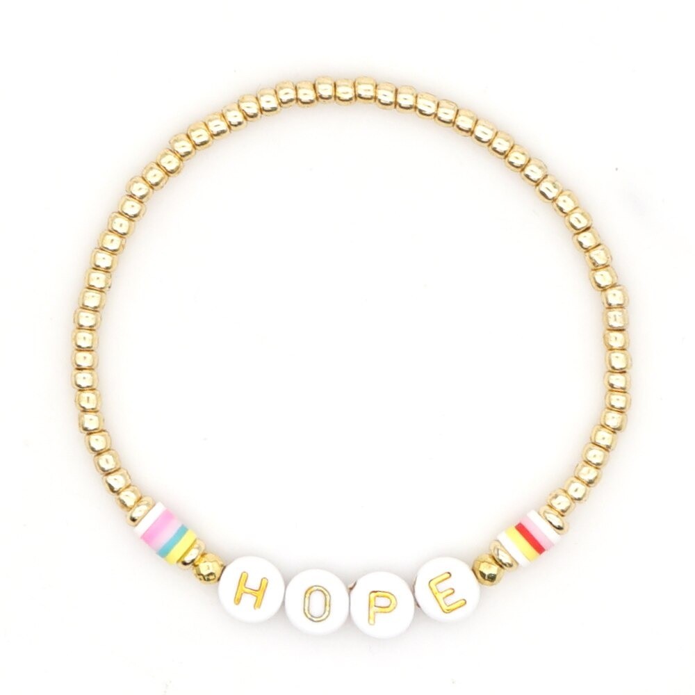 Pulseira de contas feminina com inscrição