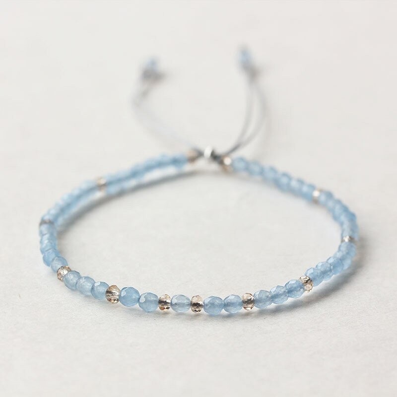 Pulseira de contas para senhora em aquamarina
