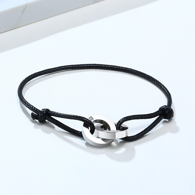 Pulseira de cordão com anéis ligados
