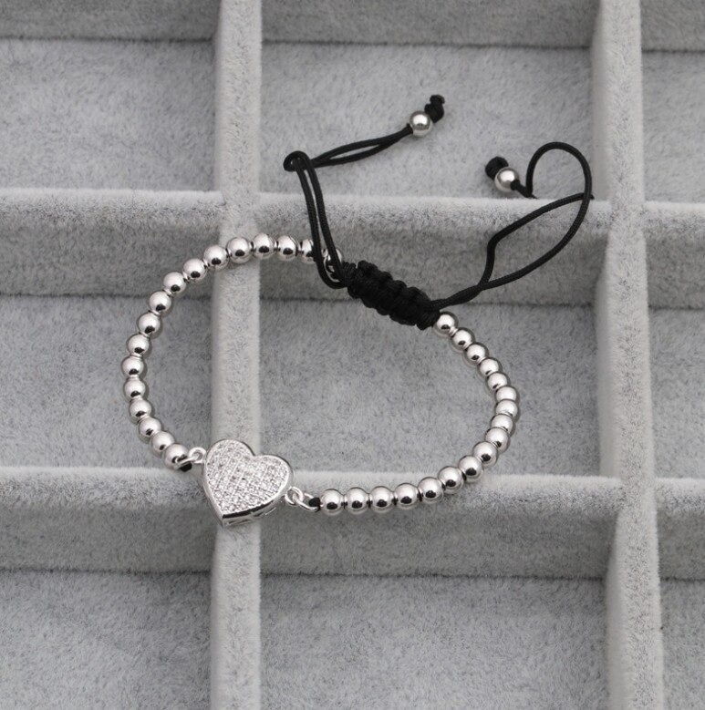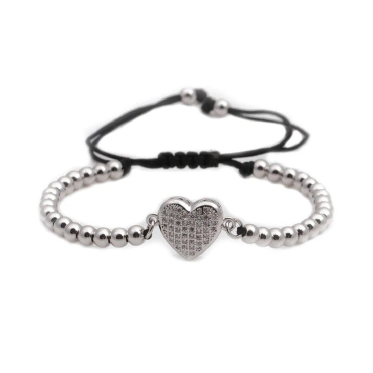 Pulseira de cordão para senhora com contas e coração