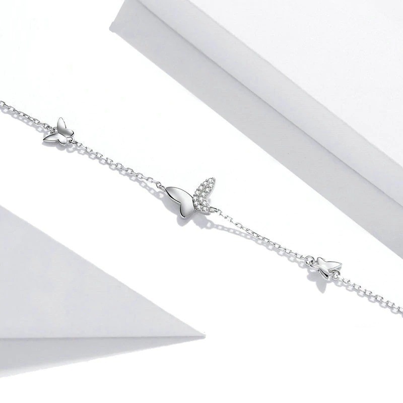 Pulseira de corrente feminina com borboletas H163