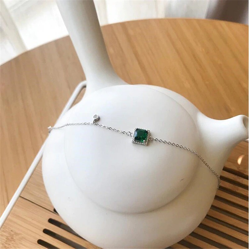 Pulseira de corrente feminina com pedra verde