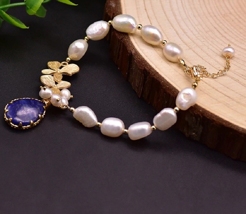 Pulseira de pérolas para senhora com pendente