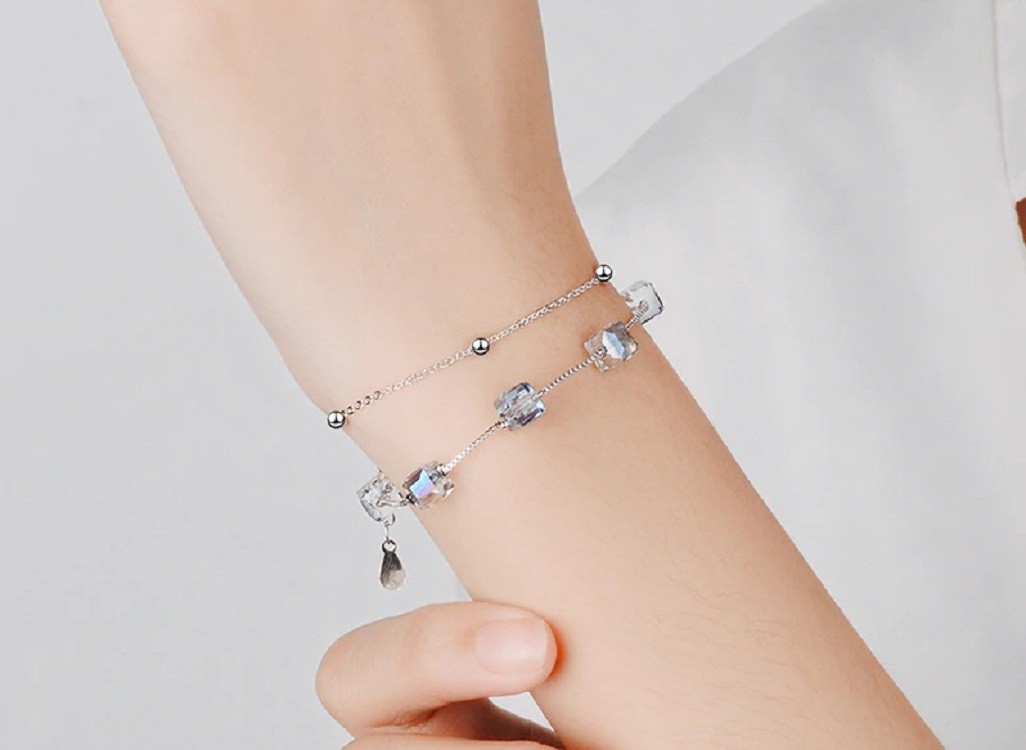 Pulseira dupla feminina com cubos