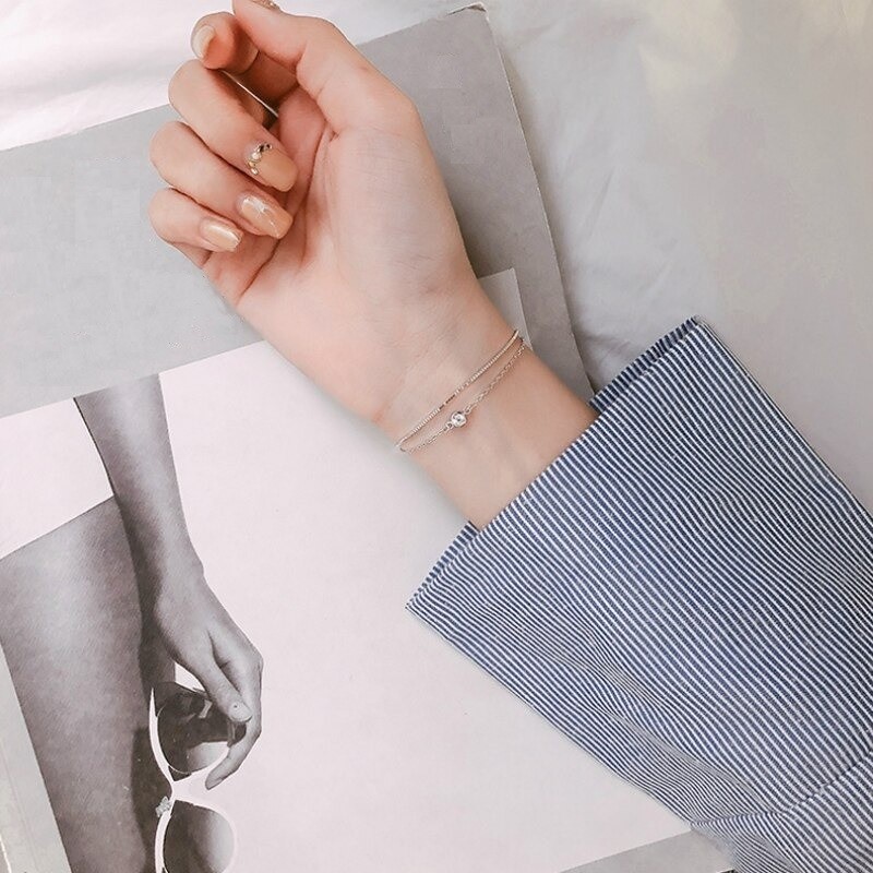 Pulseira dupla feminina com pedra