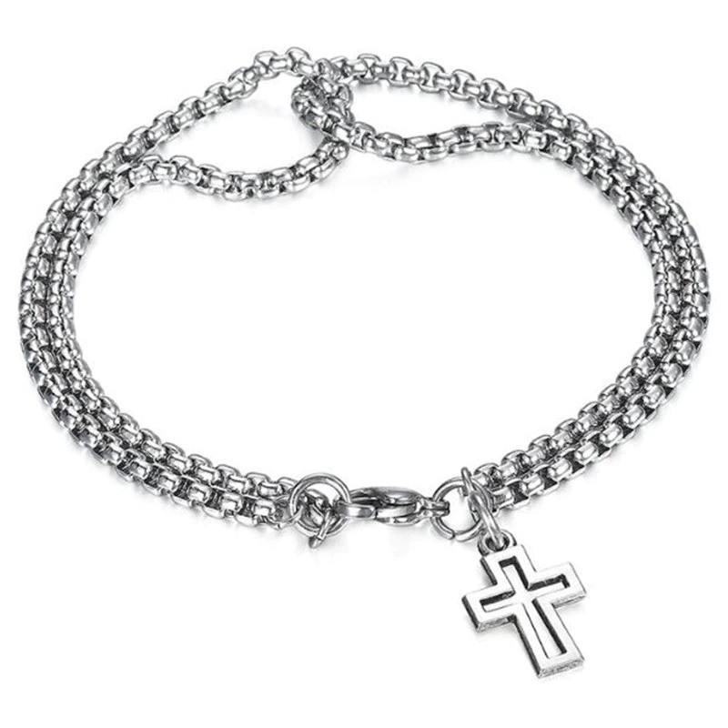 Pulseira dupla masculina com cruz