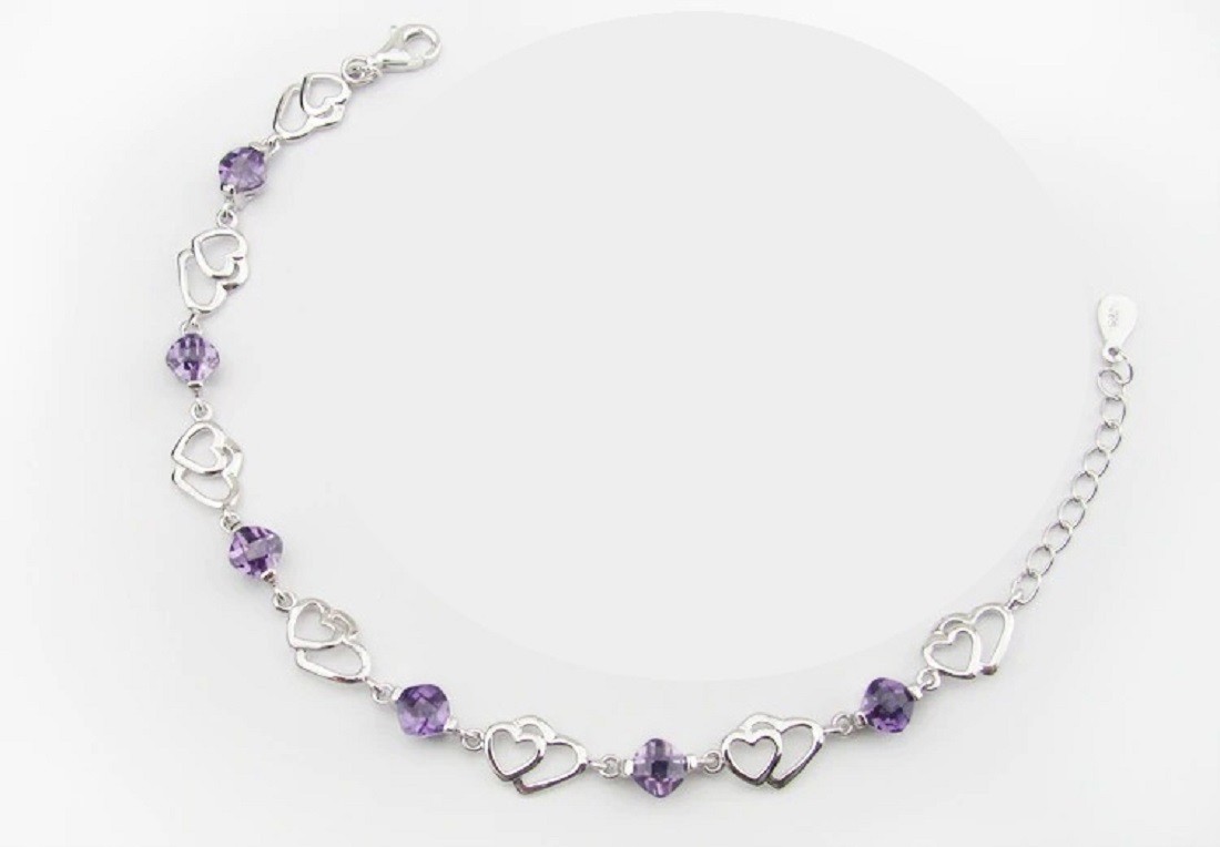 Pulseira feminina com corações e pedras