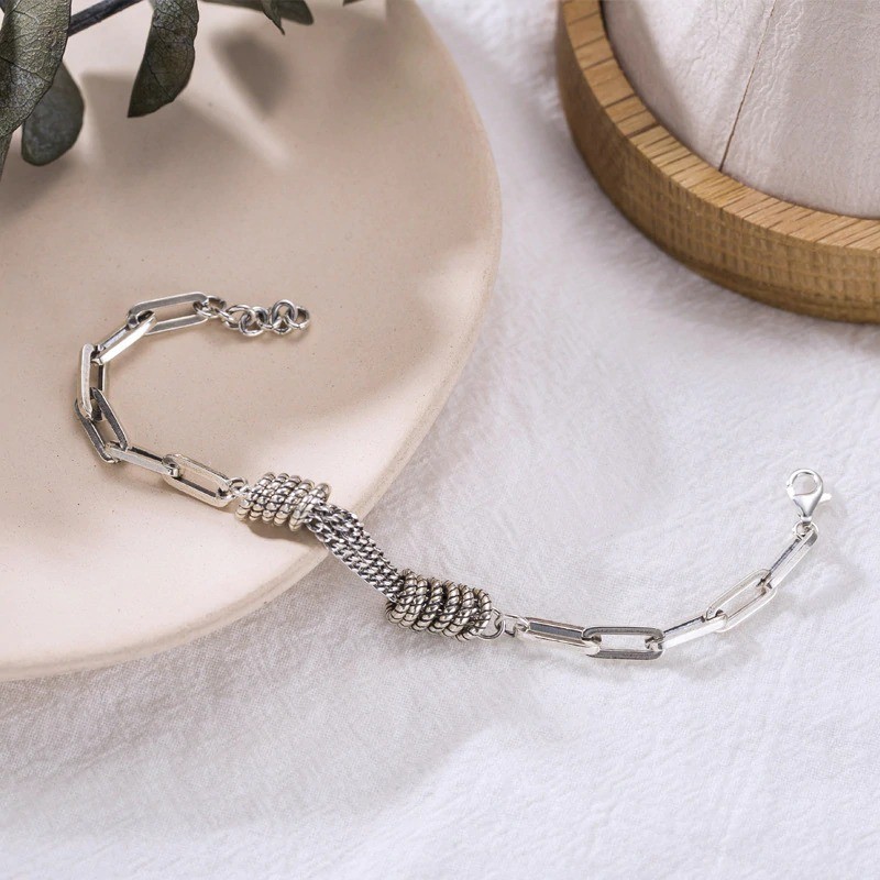 Pulseira feminina com grandes elos e argolas