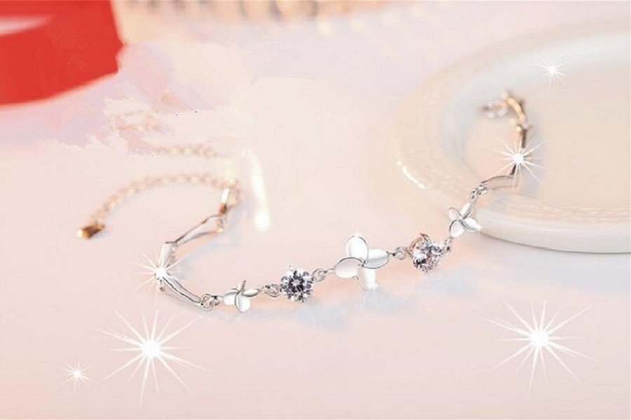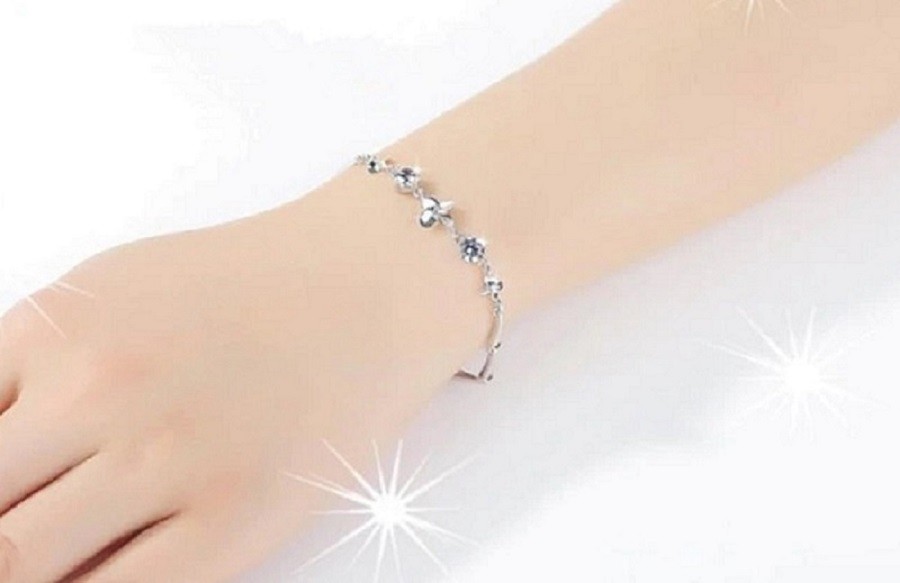 Pulseira feminina com pedras e flores