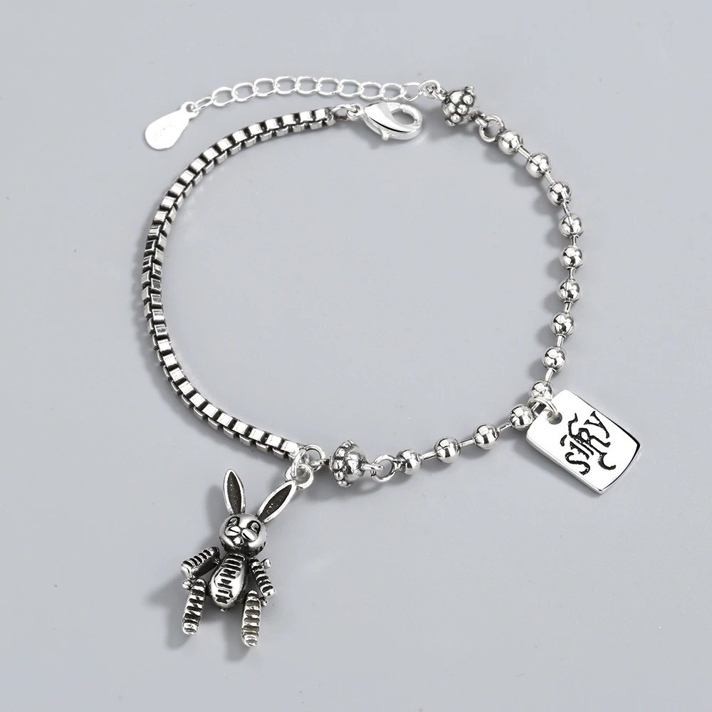 Pulseira feminina com pendente de coelho