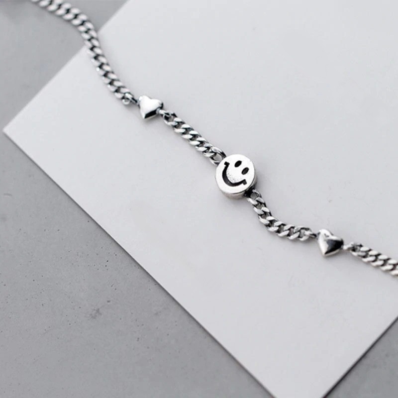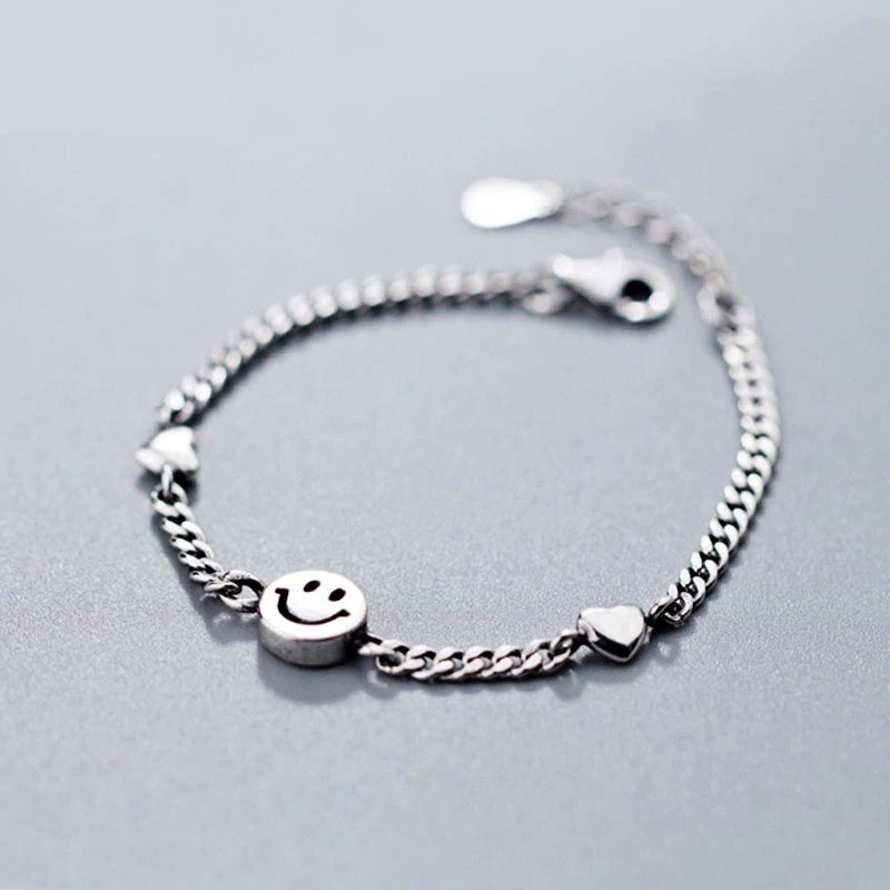 Pulseira feminina com smiley e corações