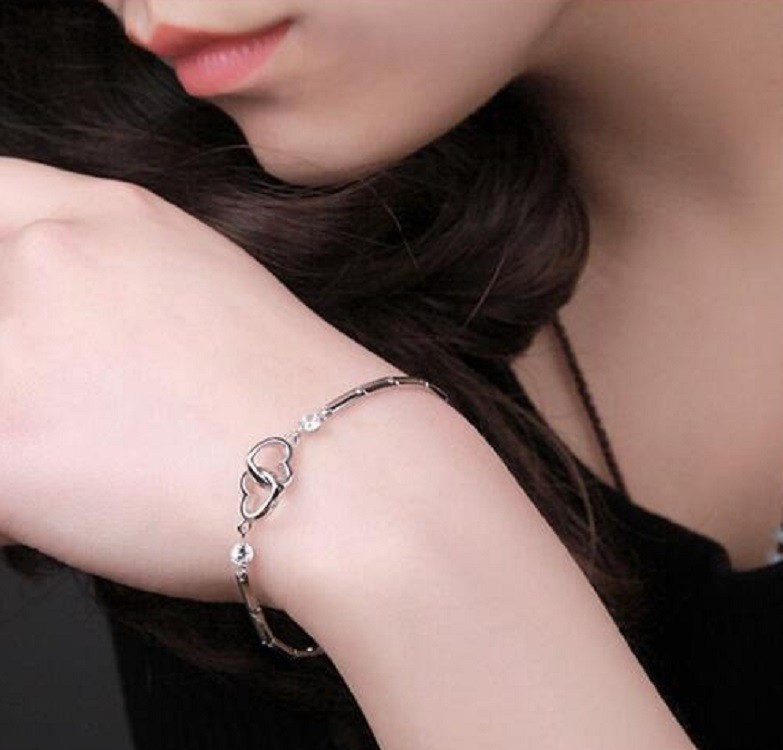 Página inicial Página inicial Joias e relógios Joias e relógios de mulher Pulseiras de mulher Pulseira feminina corações entrelaçados e pedras