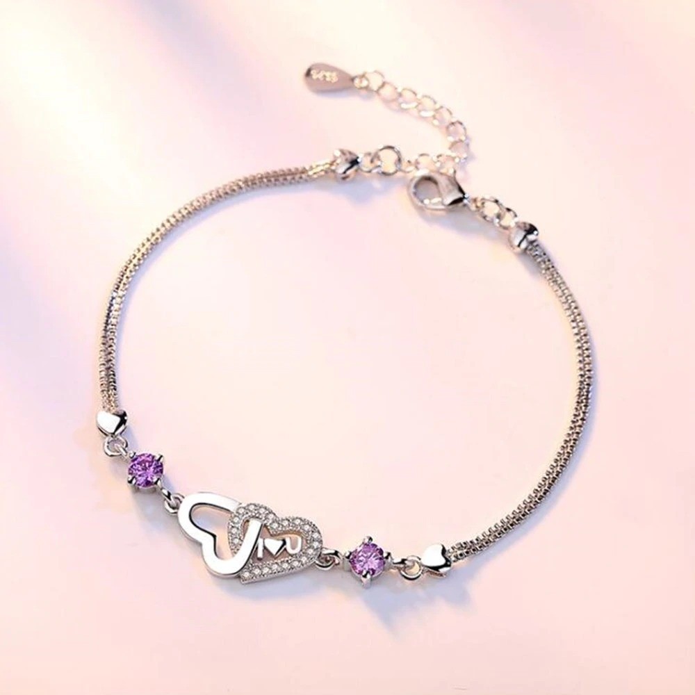 Página inicial Página inicial Joias e relógios Joias e relógios de mulher Pulseiras de mulher Pulseira feminina corações entrelaçados e pedras