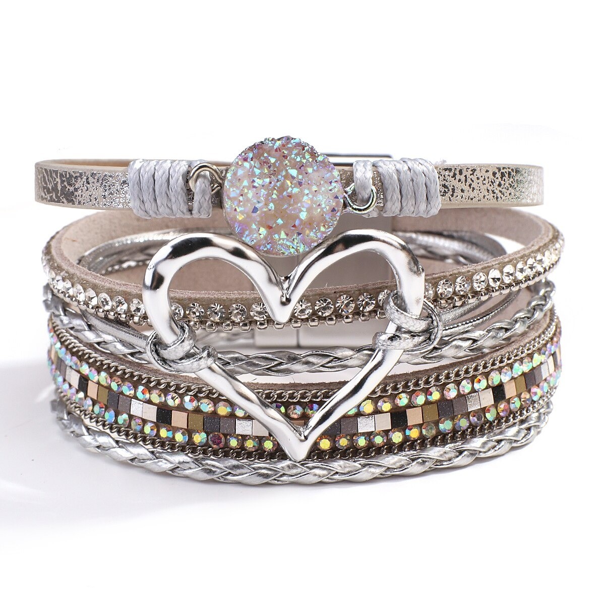 Página inicial Página inicial Joias e relógios Joias e relógios de mulher Pulseiras de mulher Pulseira feminina de várias camadas com coração