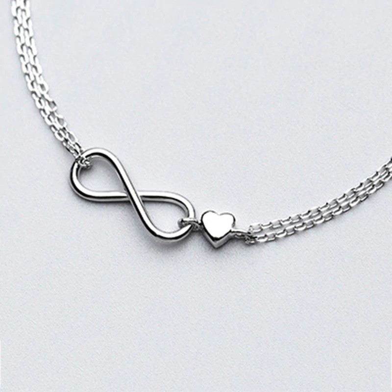 Pulseira feminina infinito com coração