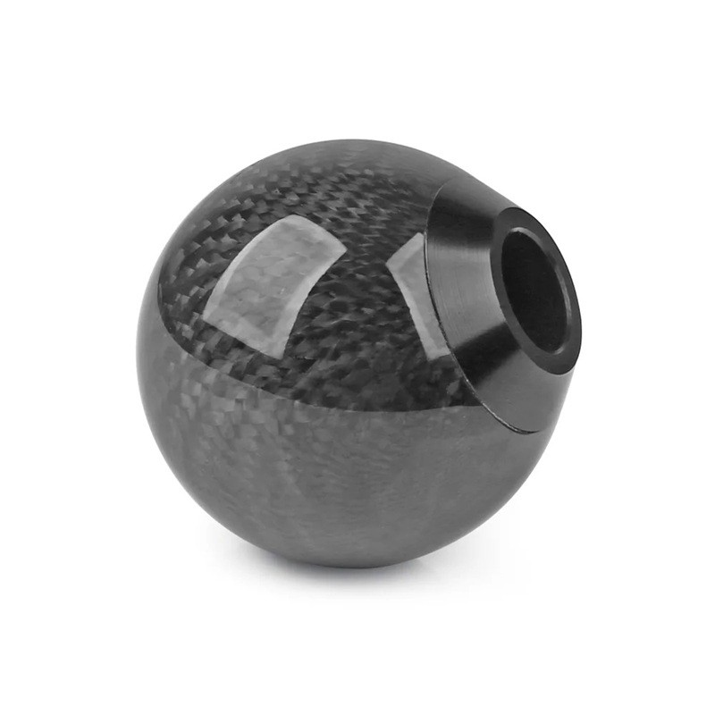 Punho da alavanca de mudança em ABS com faixa de carbono para caixa de velocidades manual, incluindo 3 adaptadores para instalação universal. Descrição completa