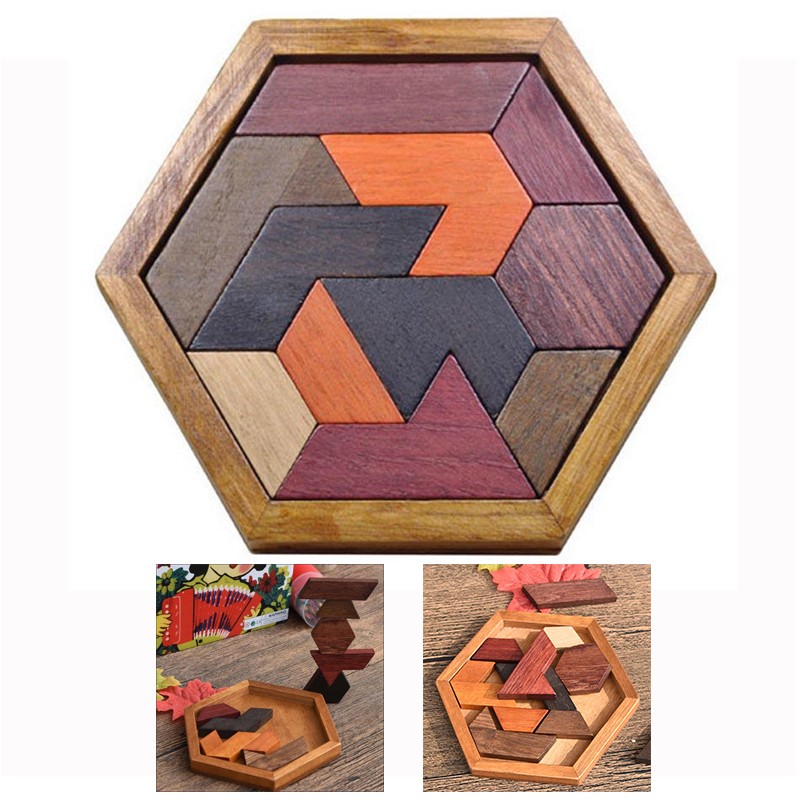 Quebra-cabeças geométrico em madeira