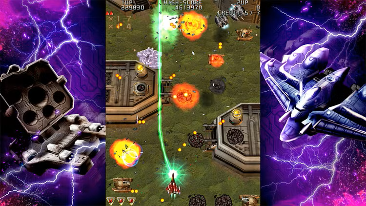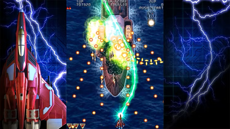 Levante voo nos céus em Raiden III x MIKADO MANIAX , uma entrada eletrizante na clássica série de jogos de arcade! Personalize a música, os fundos, o modo de jogo e muito mais, antes de se lançar na ação aérea de alta octanagem!