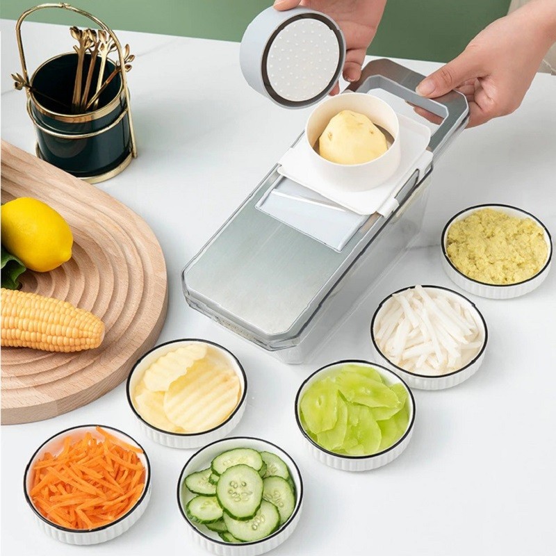 Conteúdo da embalagem: 1x ralo, 1x tigela, 6x lâmina intercambiável, 1x tampa de proteção