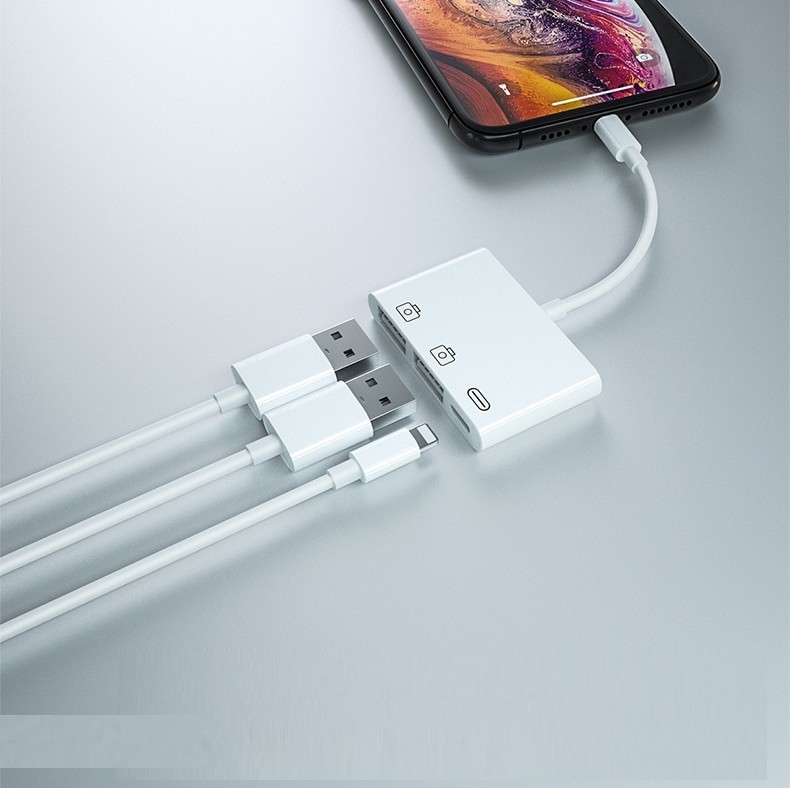 Conectores: Lightning (macho), Lightning (fêmea), 2x USB (fêmea)