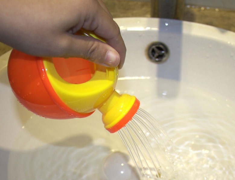 Com o regador de plástico, as crianças podem brincar na banheira, na piscina e junto ao lago.