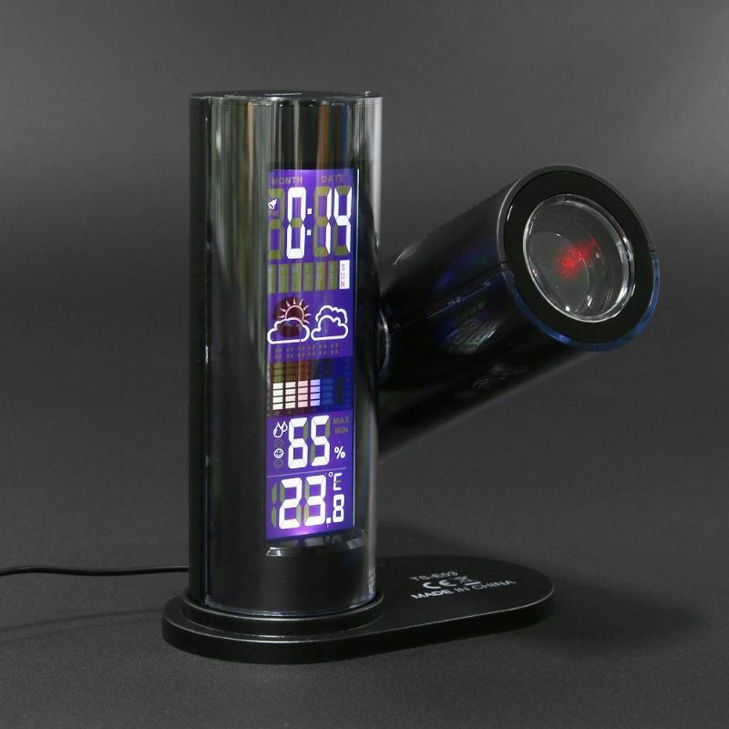 Funções: termómetro, higrómetro, previsão do tempo, despertador, calendário, projeção de hora