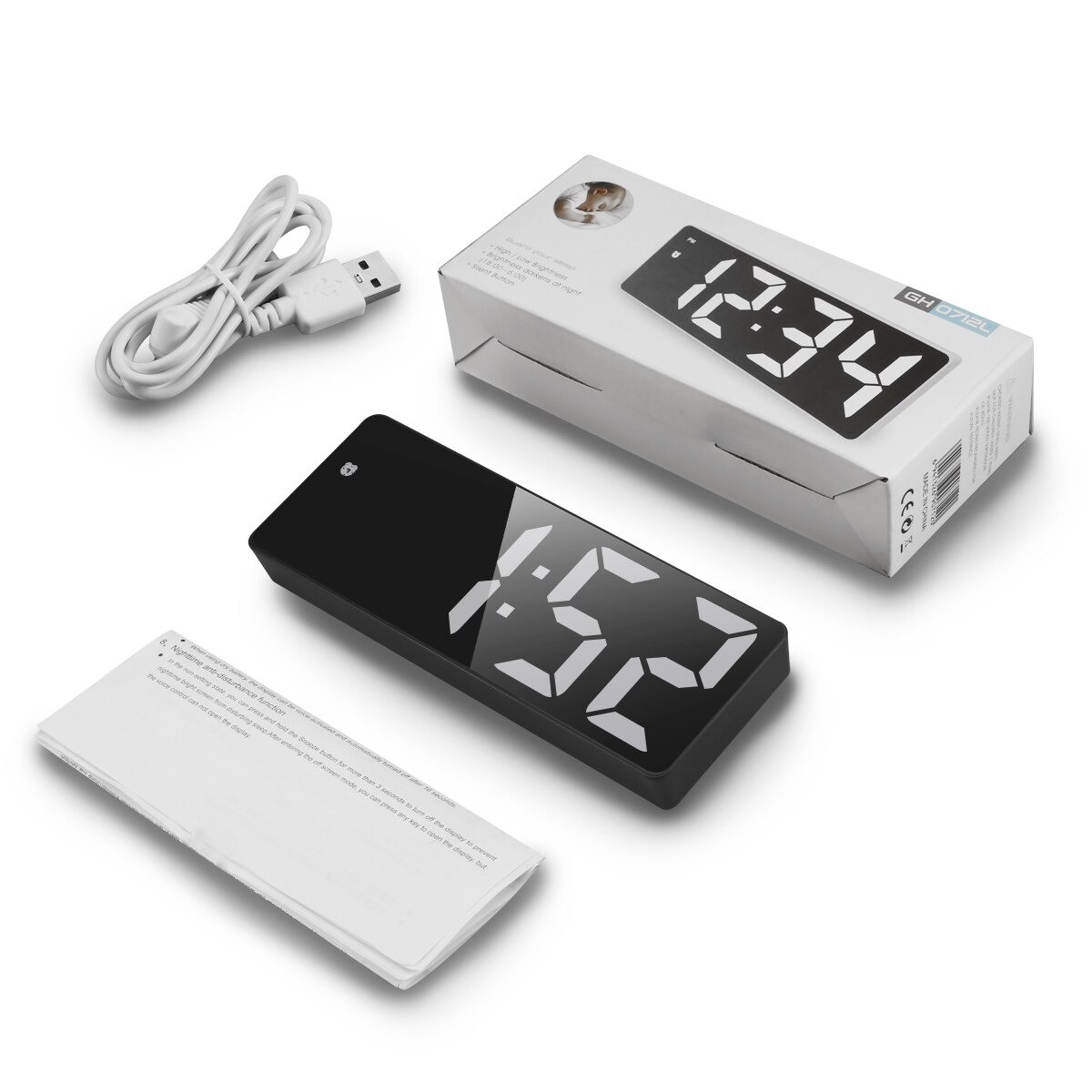 Funções: despertador, data, termómetro, iluminação nocturna, controlo por voz