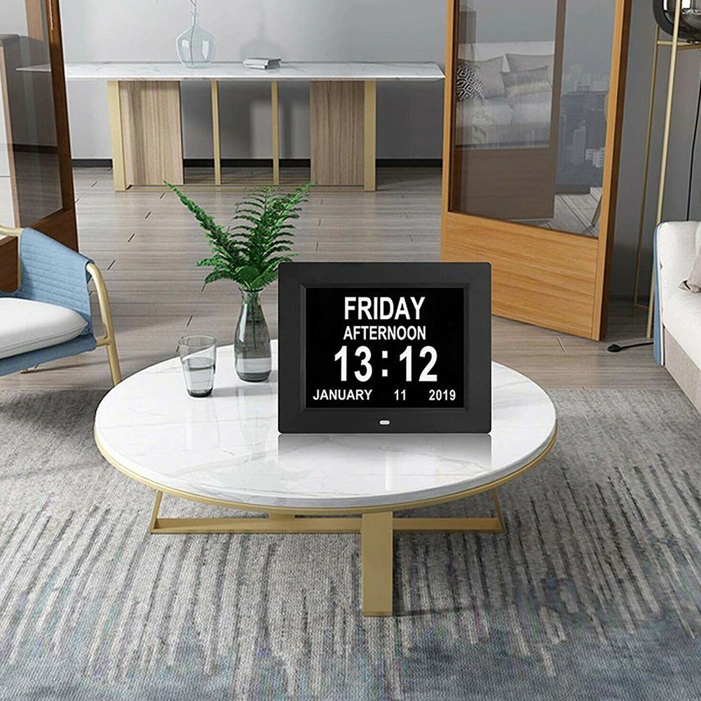 Funções: data, despertador, iluminação noturna, porta USB, leitor de cartões SD, lembrete de medicamentos