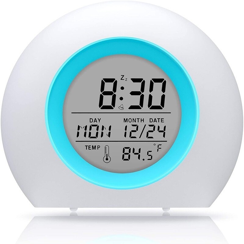 Funções: termómetro, data, iluminação noturna, sons para adormecer
