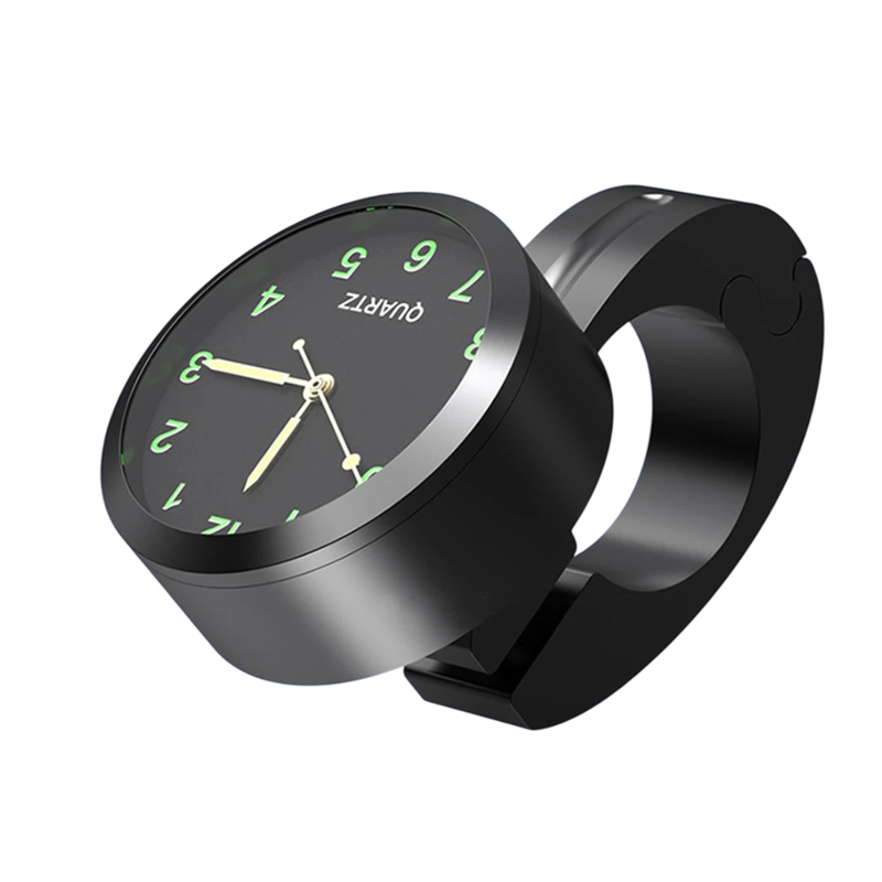 Relógios de moto em aço inoxidável com corpo à prova de água, visão noturna e fivela para guiadores de 22/25 mm, ideais para uso diário. Descrição completa
