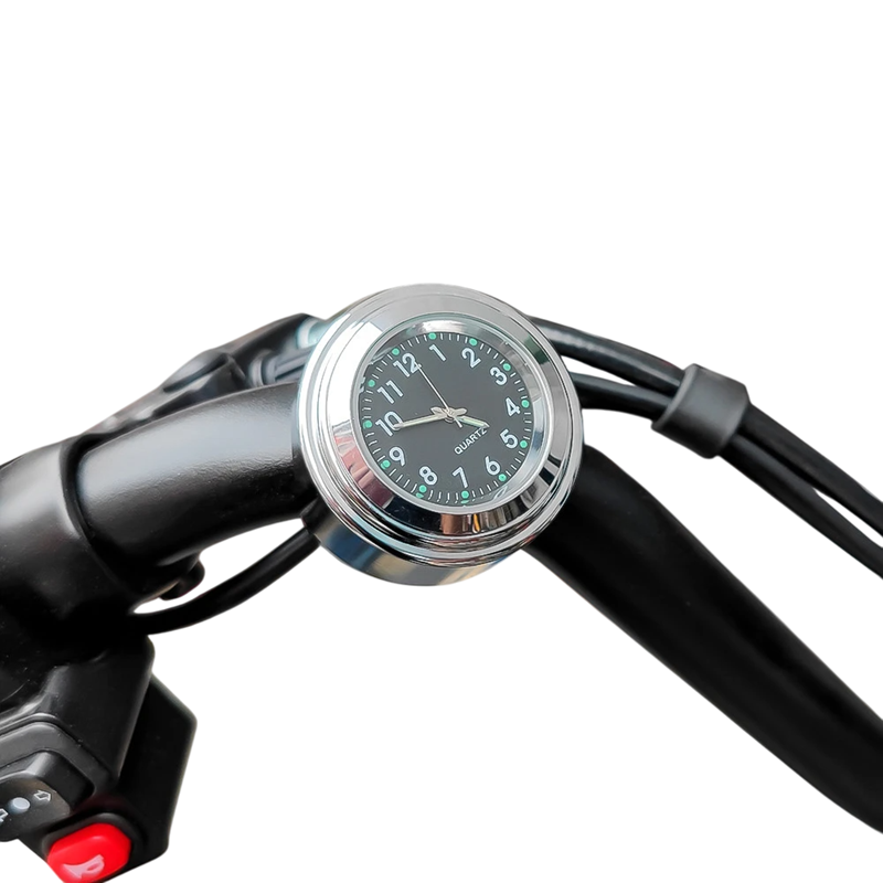 Estes relógios cromados de motocicleta oferecem uma combinação de design clássico, alta resistência e utilização prática. Destinados a serem montados em guiadores com diâmetro de 22–25 mm, são fabricados em alumínio leve, mas resistente, com um elegante acabamento cromado. Graças ao corpo à prova d'água e mecanismo quartz, fornecem a hora exata em qualquer condição climática. O mostrador é também luminoso, garantindo uma excelente legibilidade mesmo no escuro. Estes relógios são o acessório ideal para qualquer motociclista que procura uma combinação de estilo, funcionalidade e resistência.