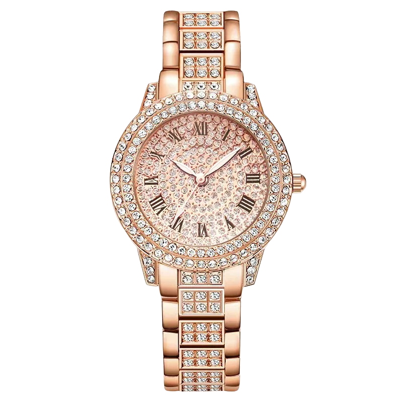 Relógios de senhora com diamantes artificiais representam uma combinação de elegância, precisão e design luxuoso. Os relógios têm um design elegante e sofisticado que se funde com as tendências modernas e elementos clássicos. Material leve e design ergonómico. Descrição completa