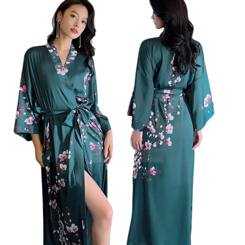 Página inicial Página inicial Roupa e acessórios Roupa de mulher Roupa de dormir de mulher Roupões de mulher Roupão de Senhora Tamanho Único com Padrão Floral Laço na Cintura Roupão Leve em Seda Sintética e Poliéster Roupão Elegante para Uso Doméstico