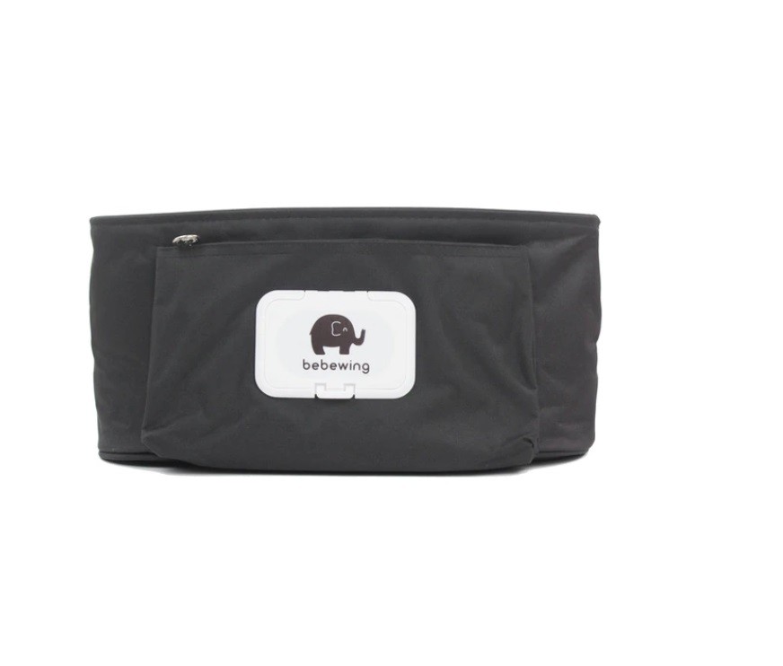 A bolsa contém um bolso frontal para toalhetes húmidos.