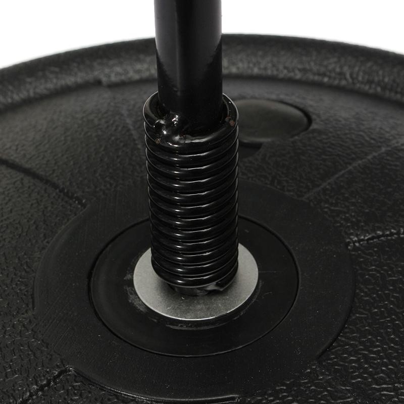 O saco de boxe é fixado a um suporte que é ajustável em altura.