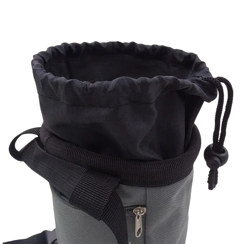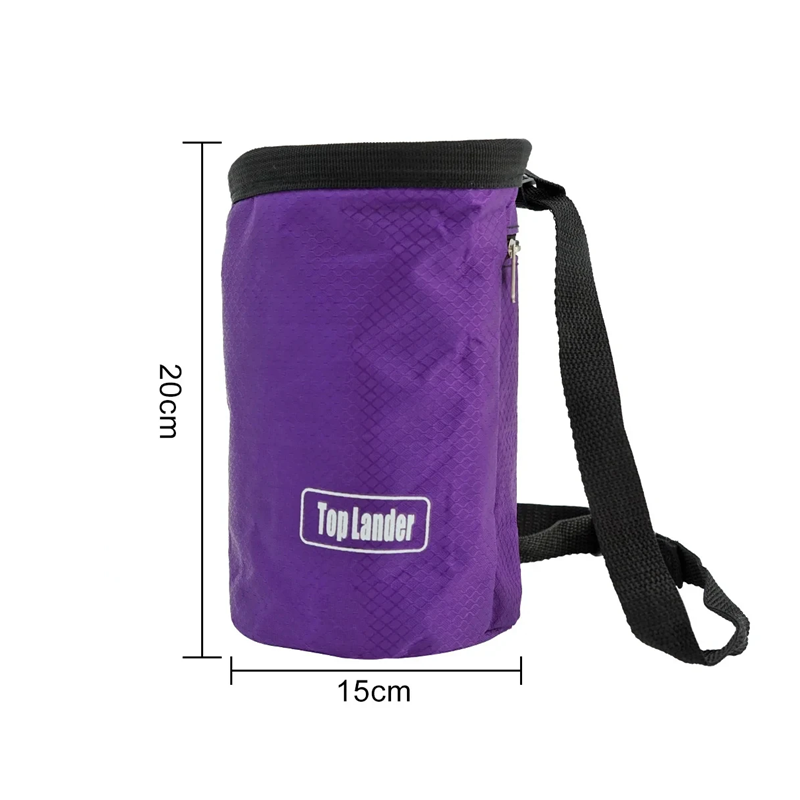 Saco de magnésio 20 x 15 cm com cordão de aperto, alça ajustável de 58–105 cm e bolso lateral para acessórios