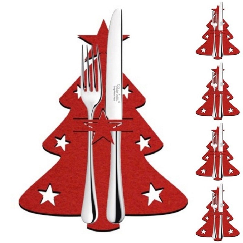 O saco de Natal para talheres em forma de árvore é uma decoração ideal para a mesa. É fabricado em material de qualidade. Proporciona uma atmosfera natalícia.