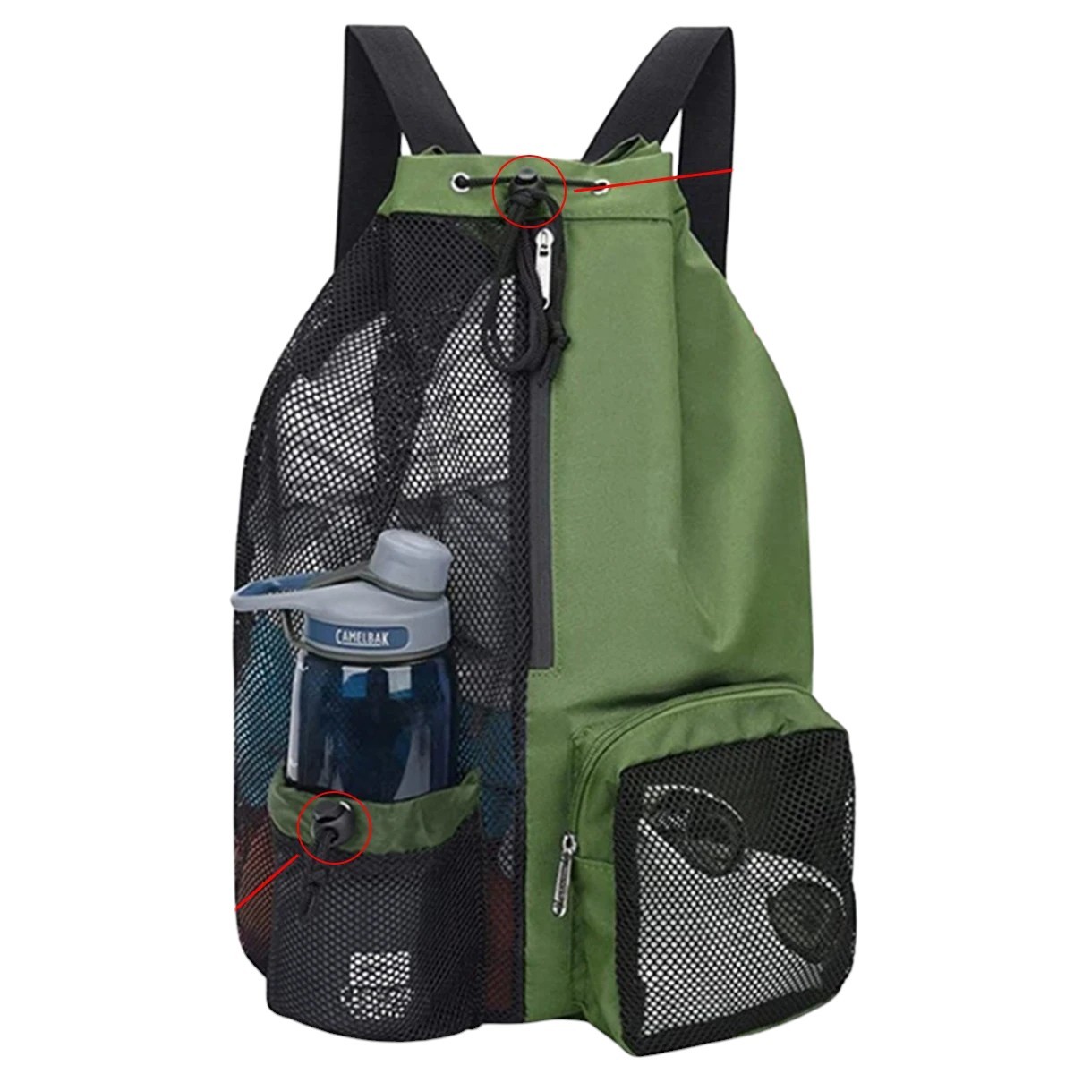 • Bolsos em rede + bolso com fecho