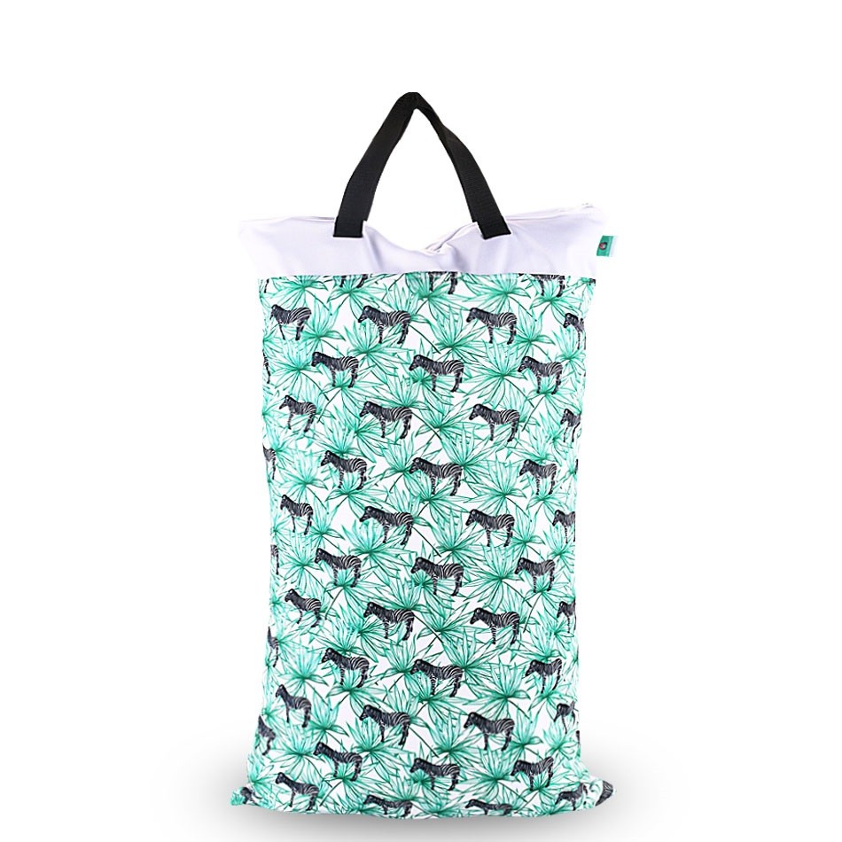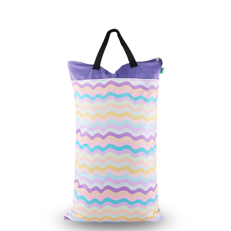 Saco suspenso para fraldas com um compartimento interno duplo para separar fraldas limpas e usadas.