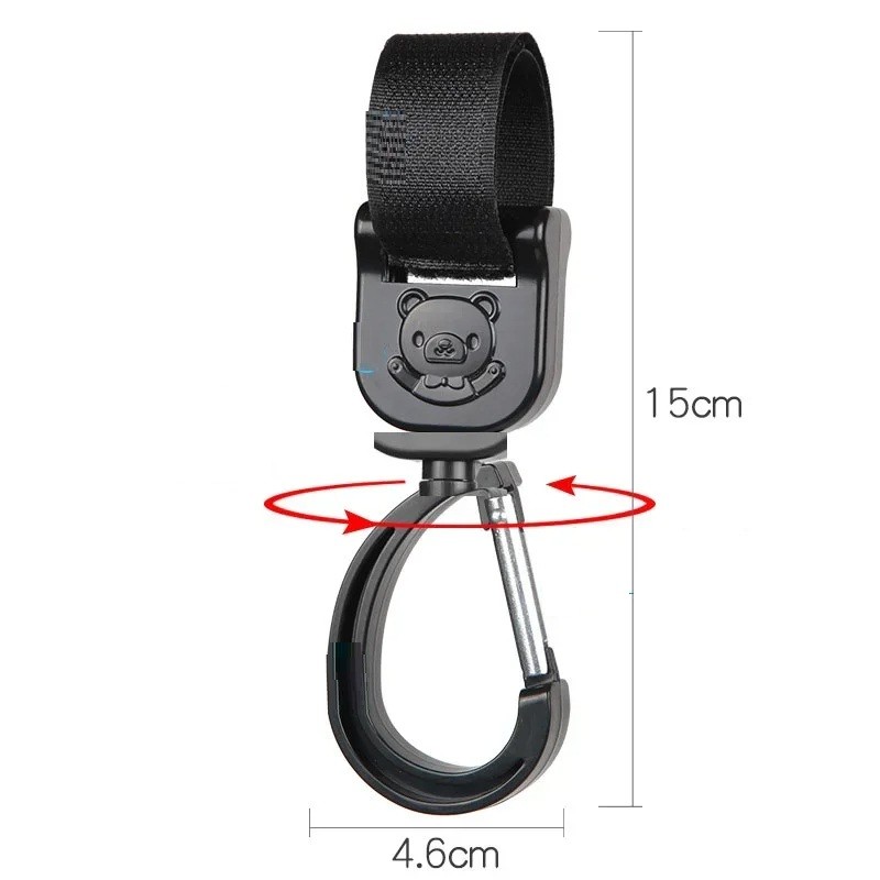 Sada 2 pcs ganchos rotativos para carrinho 15 cm Suportes universais para sacos rotação 360° Fixação em velcro