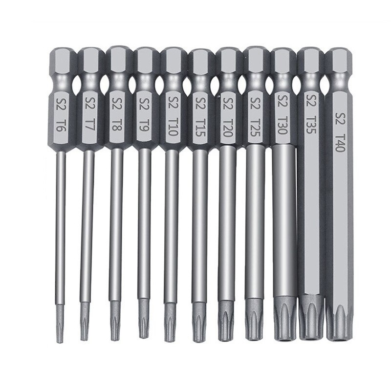 Estes bits de segurança de alta qualidade são ideais para todos os projetos domésticos. Os bits são fabricados em aço ligado, que lhe garante resistência e durabilidade a longo prazo. Por isso, não hesite e equipe a sua oficina com esta sada de bits.