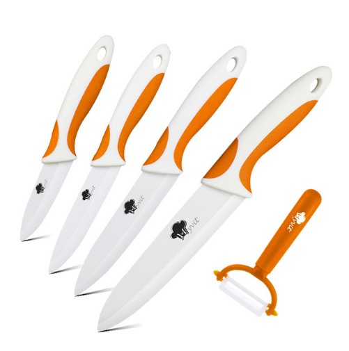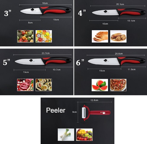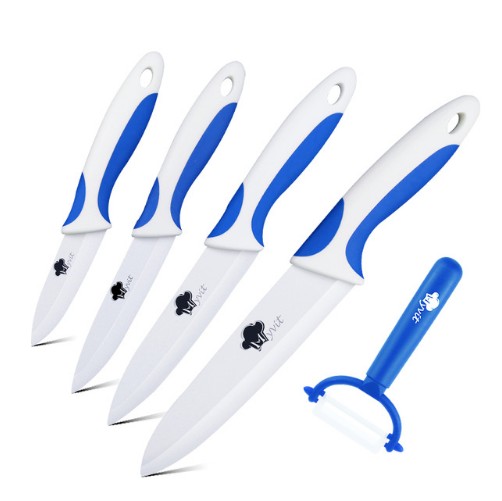 As facas destacam-se pelo seu revestimento cerâmico, que torna as lâminas mais resistentes ao desgaste e mantêm-se afiadas por mais tempo.