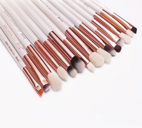 A set contém 15 pincéis com um design exclusivo, que pode usar para sombras, delineadores, corretor, pó, base e muitos outros produtos.