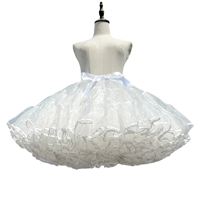 Saia curta de organza com volantes de 45 cm, petticoat extra volumoso para vestidos, fantasias e trajes de dança retro