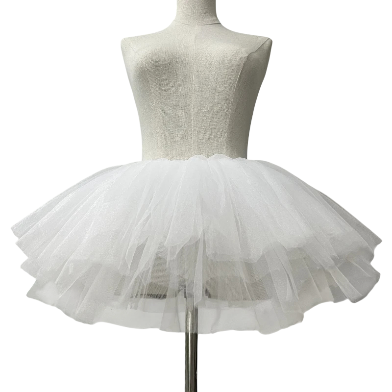 Saia leve e curta que dá volume e uma forma bonita aos vestidos. Cintura elástica confortável e material suave garantem conforto ao mover-se e ao usar. Descrição completa