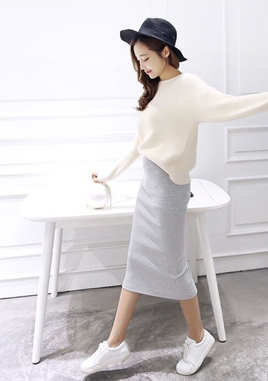 Saia de moda feminina em algodão - Cinza claro