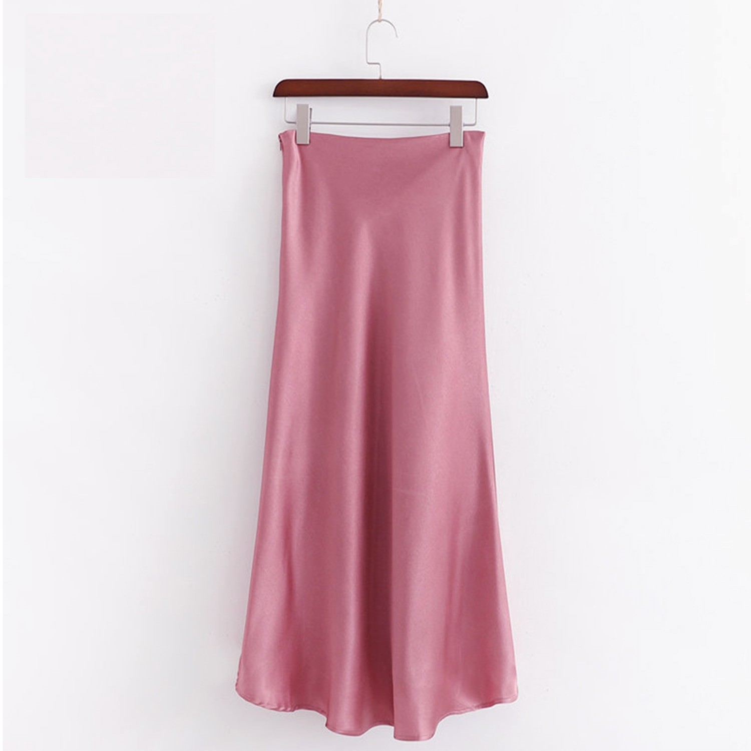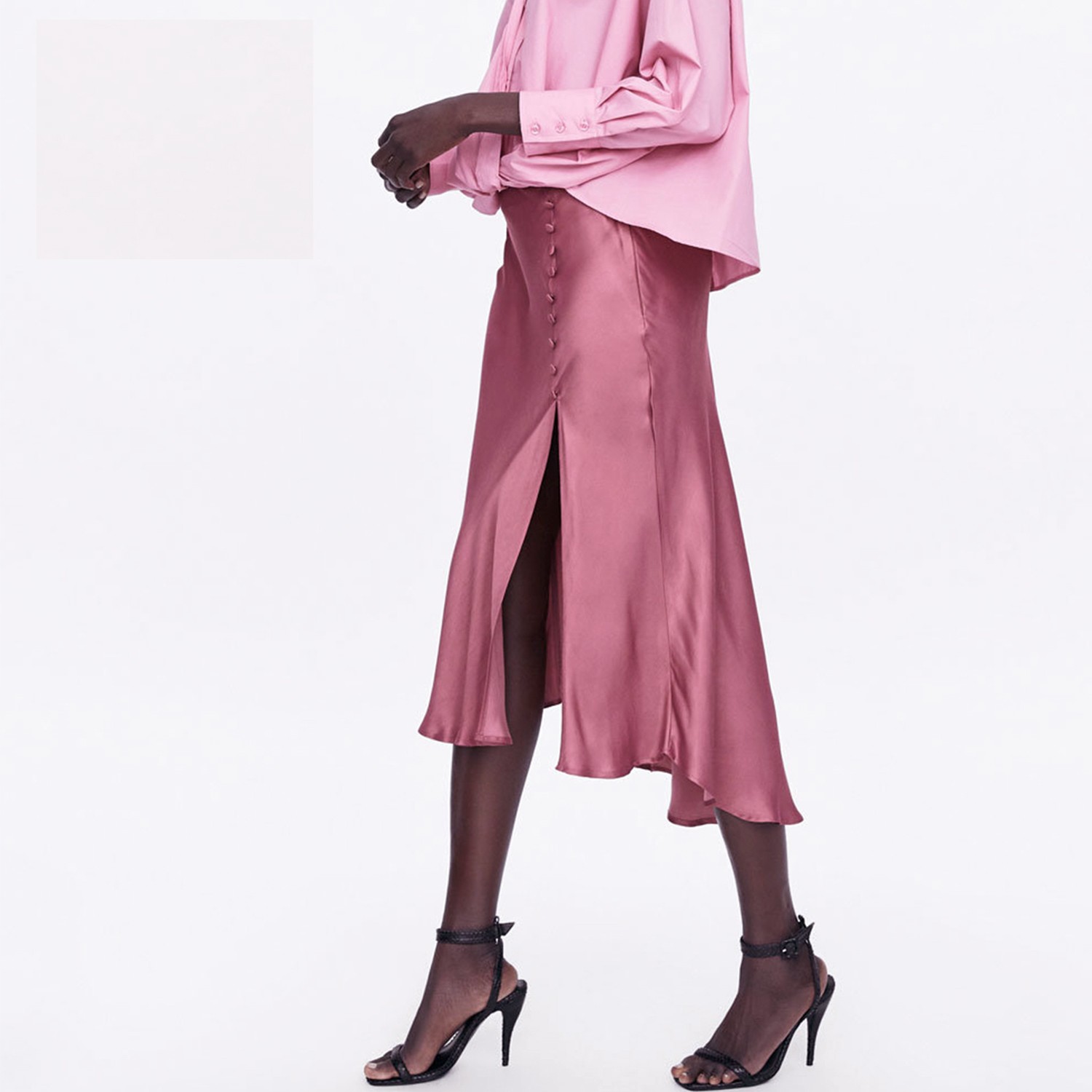 Saia de satén para senhora com fenda alta