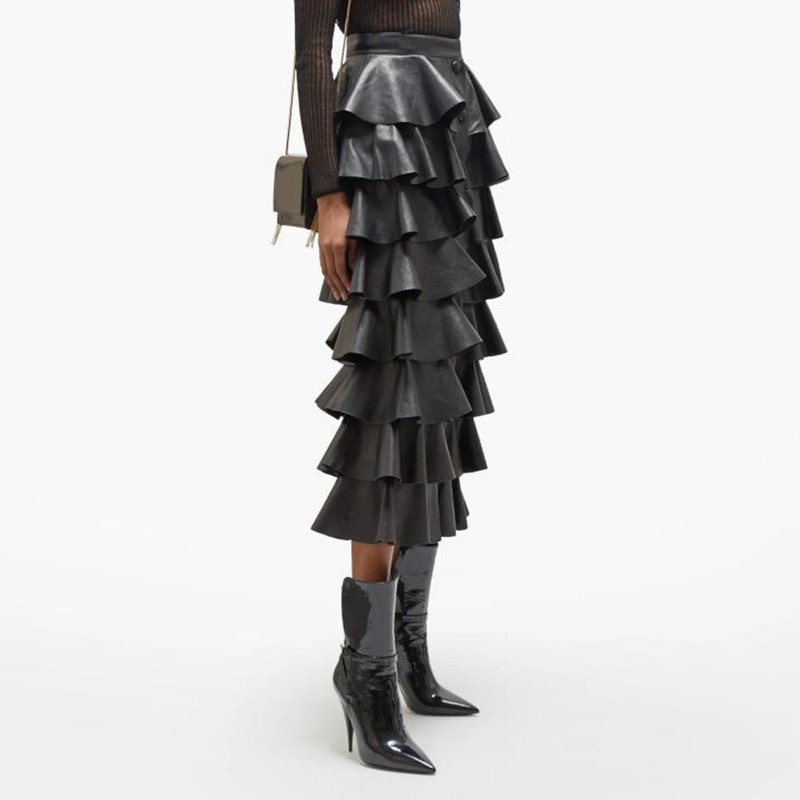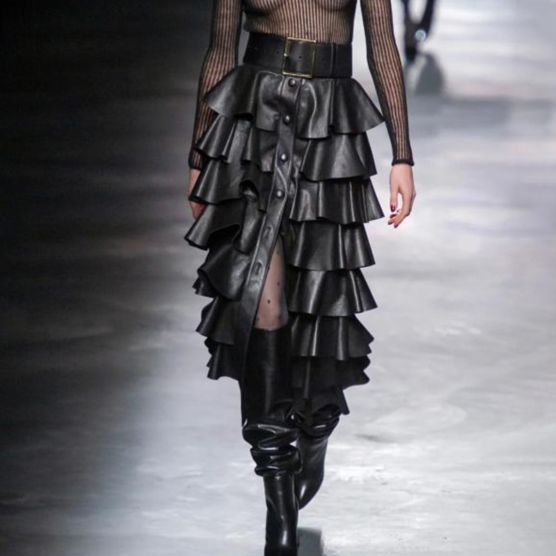 Saia feminina com folhos