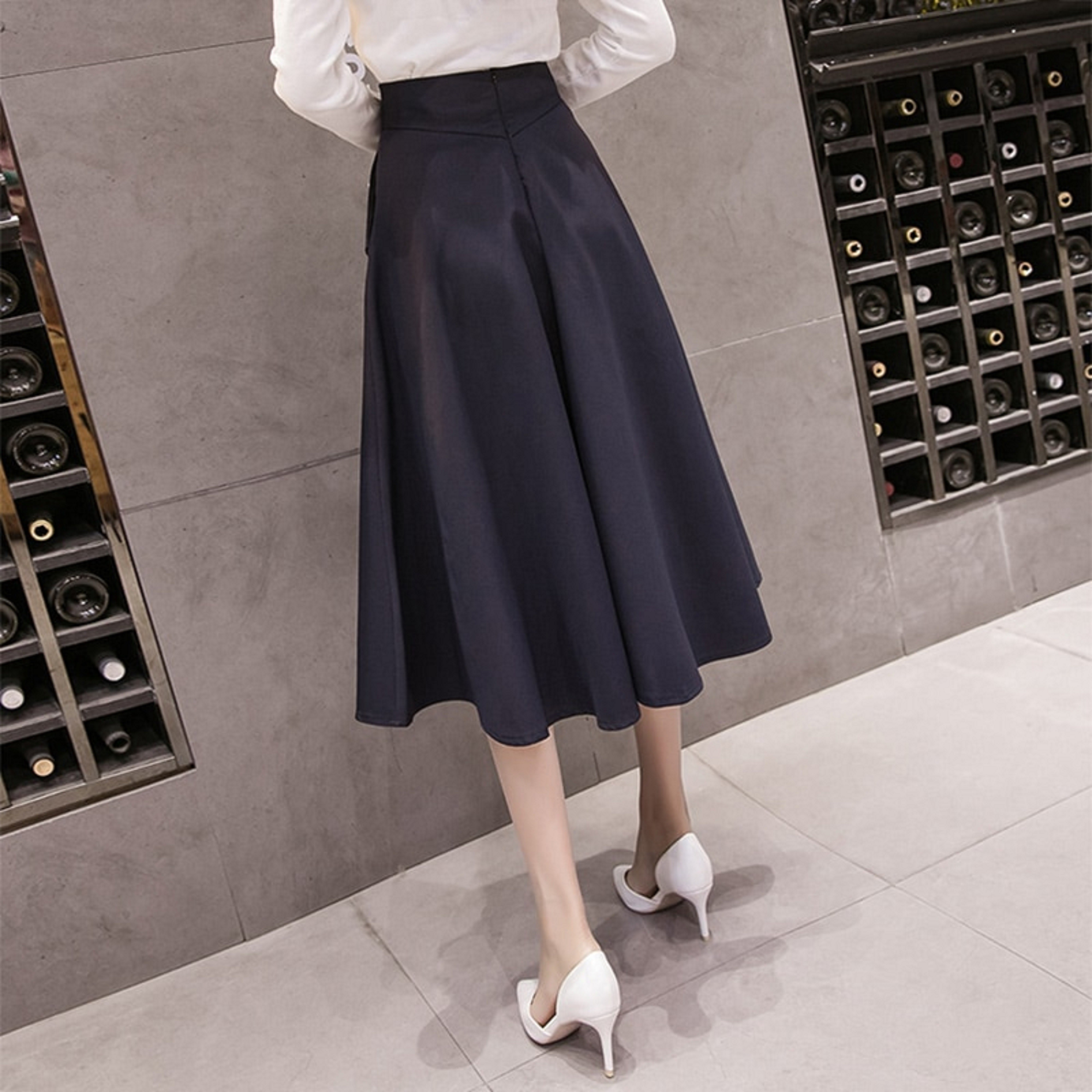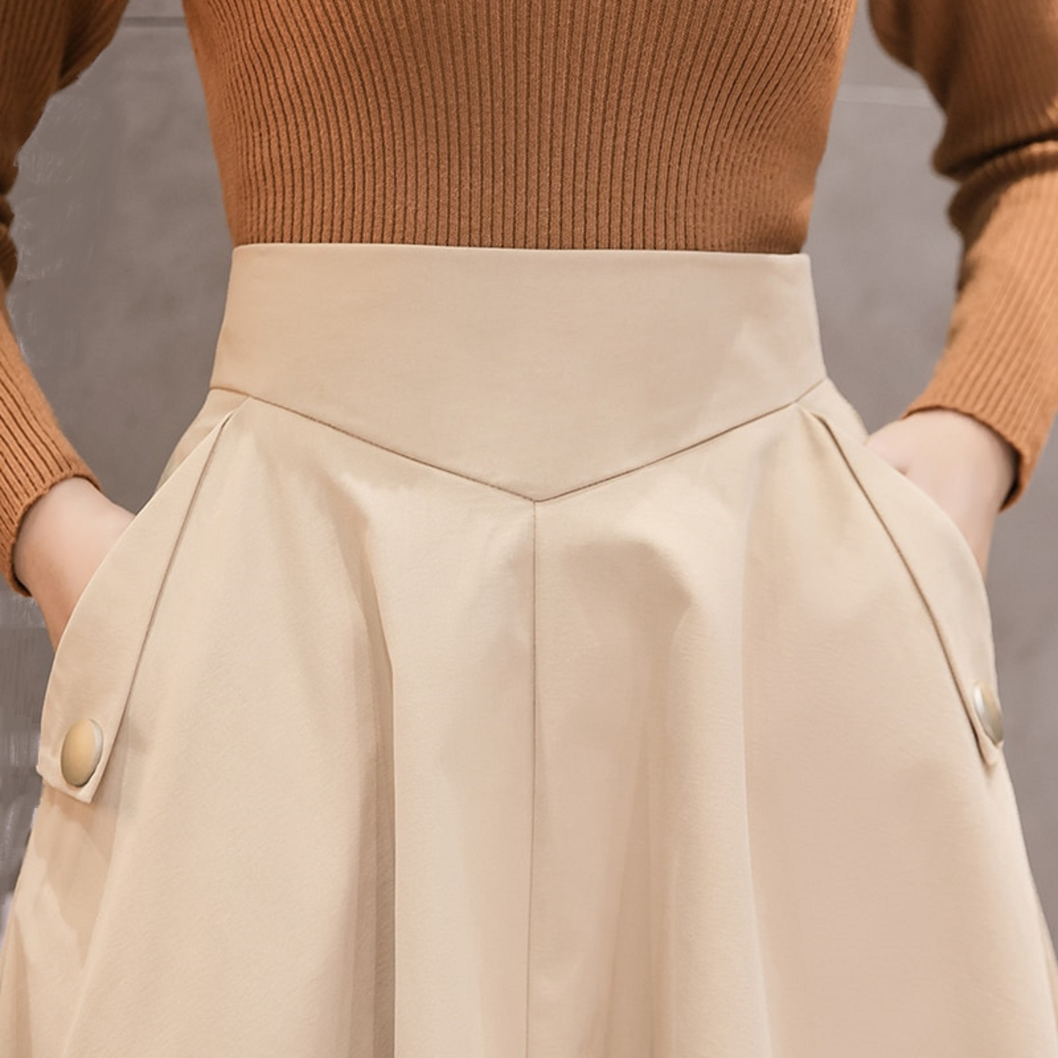 Saia feminina de cintura alta com bolsos